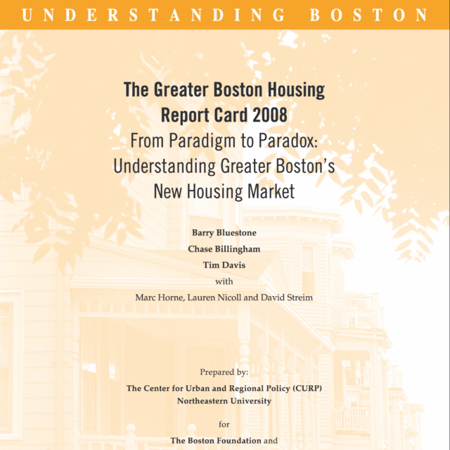 This report combines elements of the original New Paradigm study with the annual report cards CURP has issued along with The Boston Foundation and the Citizens’ Housing and Planning Association for each of the past five years. Like the New Paradigm study, this report tries to explain the nature of the housing problem facing Greater Boston and provides estimates of how much additional housing must be produced to meet our housing needs. It also delves into what caused the current vicious circle of rising foreclosures and falling prices.