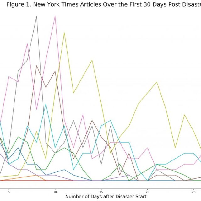 If we assume that risk is not purely objective but embedded in the social structure of society in which media sources are actors (Stallings, 1990), then it is important to understand how media coverage shapes our perceptions of disaster response. Society’s construction of risk affects disaster perceptions, public policy prescriptions, private sector initiatives, and civil society solutions that contribute to resilience. The relationship between the characteristics of a disaster, resilience responses, and the extent of media coverage in an area of the literature with great potential for exploration. In this project, I incorporate data on multiple recent hurricane and wildfire disasters from traditional media sources like cable news and the New York Times and alternative media sources like Wikipedia and Flickr. The project is ongoing and is in many ways still in the data gathering and description phases, but initial findings show substantial differences between disasters and between media sources.